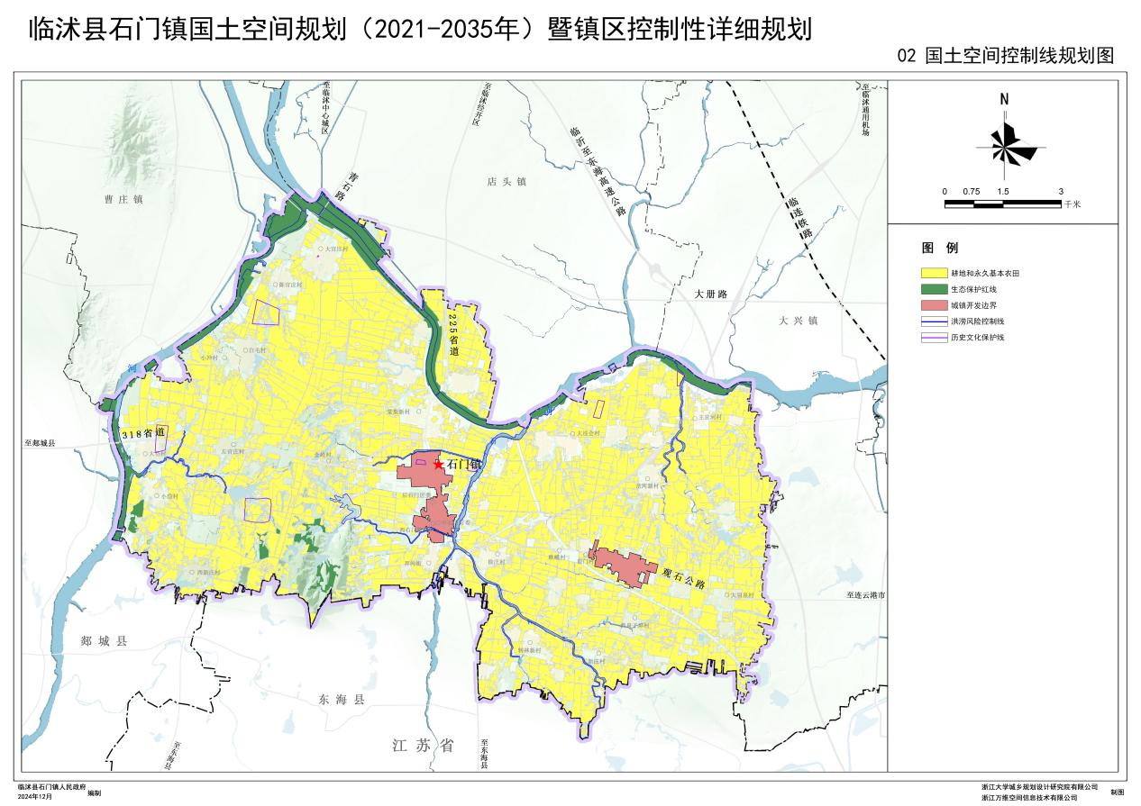 2024年12月20日,临沭县人民政府批复《临沭县石门镇国土空间规划(2021—2035年)暨镇区控制性详细规划》,现根据有关法律要求,予以公告,详细内容如下: 一、规划范围 规划范围包括全域和城镇开发边界两个空间层次。 全域层次包括石门镇行政辖区内的全部国土空间,总面积12966.28公顷。 城镇开发边界以县级国土空间规划确定的城镇开发边界为准,总面积259.88公顷。 规划范围不作为镇(街道)间勘界和管辖的依据,邻界地区开展空间开发保护利用活动时,应做好与相邻镇(街道)的协调衔接。 二、城镇性质 鲁东南沭河丹霞风情展示地,临沭县农文旅融合特色片区,林水交融的现代化生态美镇。 三、统筹划定“三条控制线” 落实上级下达的任务要求,规划至2035年,全镇划定不低于7942.96公顷(11.91万亩)的耕地和不低于7482.87公顷(11.22万亩)的永久基本农田,生态保护红线面积不低于606.07公顷,城镇开发边界面积控制在259.88公顷以内。