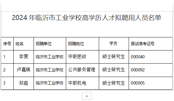 | 2024年临沂市工业学校高学历人才招聘拟聘用人员名单 | ||||||||||||||||||||||||
