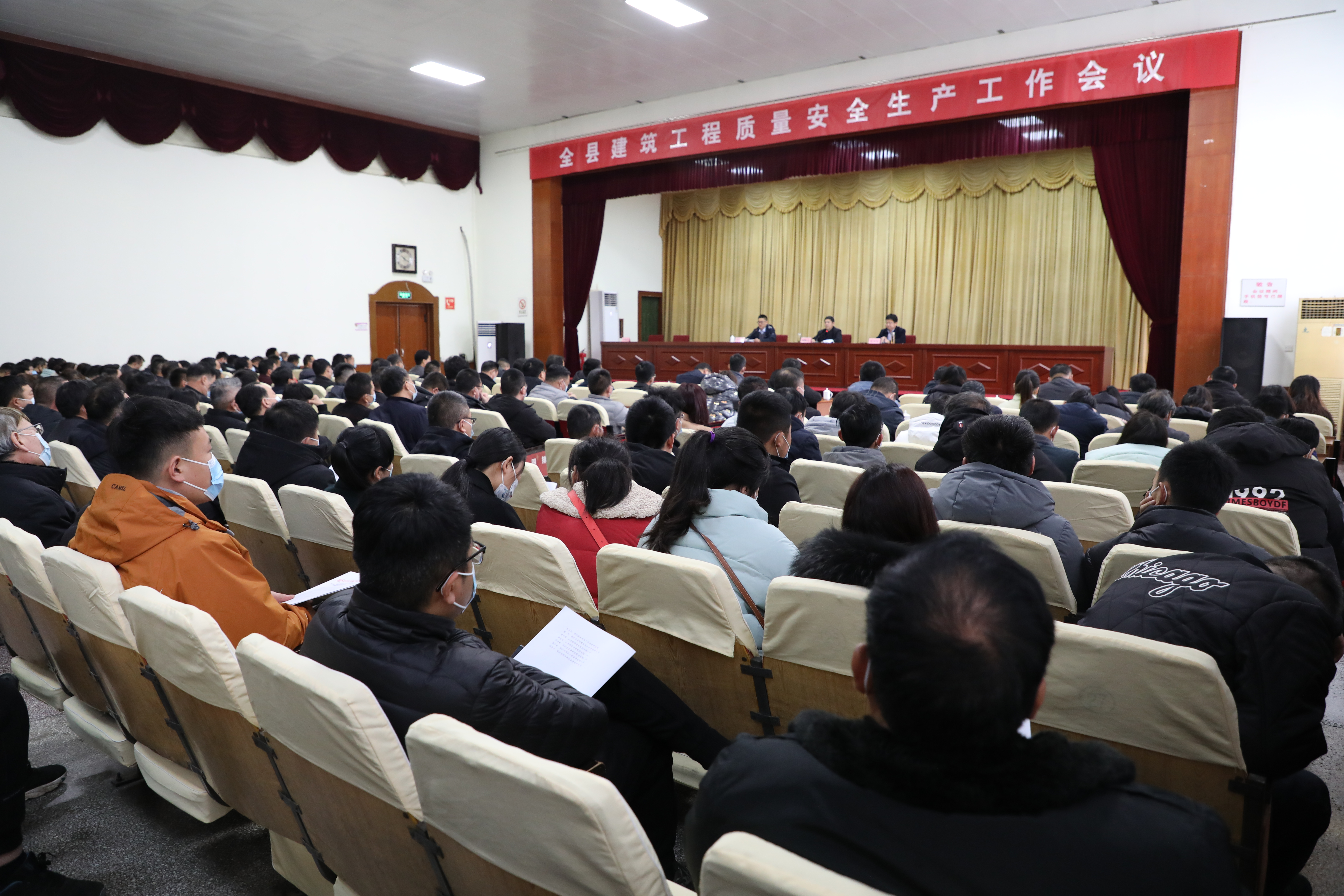 2月14日上午,全县建筑工程质量安全生产工作会议在县政府招待所小礼堂召开。全县在建工程建筑施工企业、监理企业、房地产建设单位、商混企业以及建筑起重机械租赁等相关企业、单位负责人参加了会议。局党组班子部分成员出席会议并讲话。 会议由局党组成员、副局长张卫伟主持。会上,传达了《山东省住建厅关于做好房屋市政工程节后开复工安全生产工作的通知》等文件精神,宣读了《临沭县住建局关于表彰2021年度建筑工程质量安全管理先进集体和先进个人的通报》,与各建筑企业签订了2022年度建筑施工安全生产目标责任书。局党组书记、局长胡顺仓就如何抓好全县建筑工程质量安全生产工作提出了具体要求。