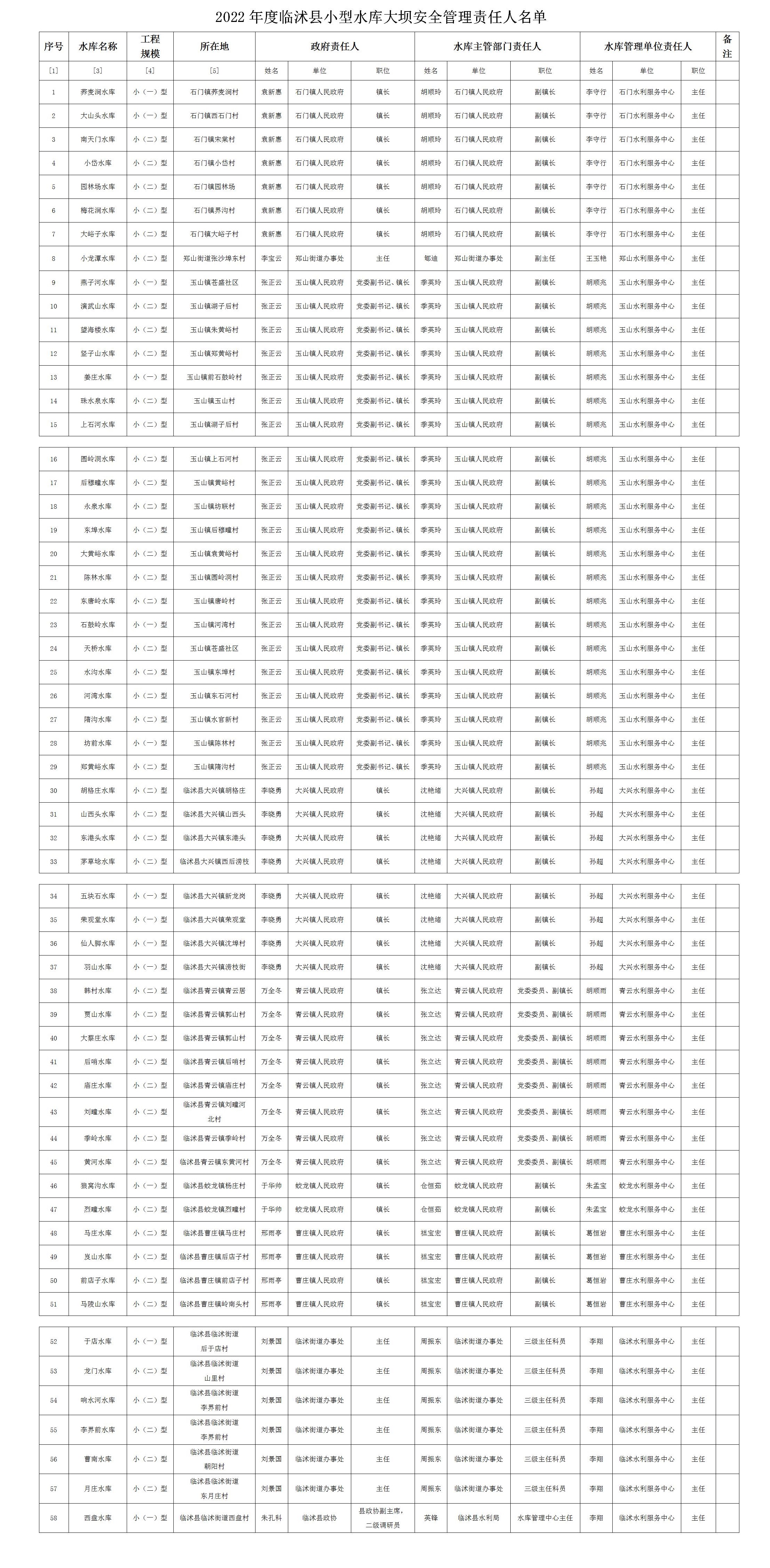 | 关于公示2022年度临沭县小型水库大坝安全管理责任人的公告 | ||||||||||||||||||||||||