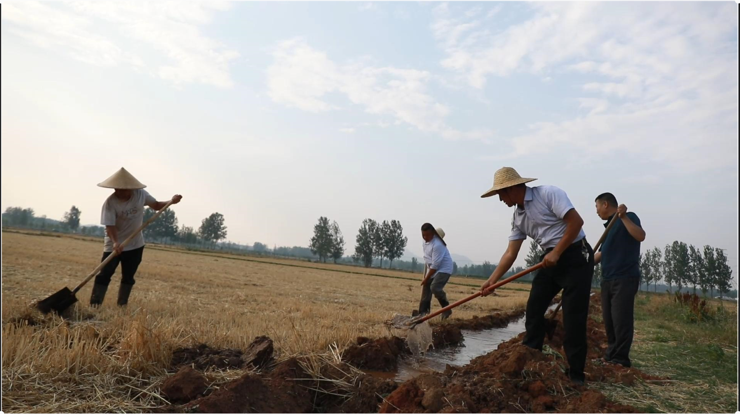因天气干旱,为确保粮食收成,王庄村主动对接临沂市农科院学习河东区梅埠街道“旱田变水田”的成功经验,一改水田用水量大、每两天就需要灌溉一次的弊端,通过挖沟挑渠,每亩用水100立方米,保障了灌溉频率和出苗率,同时能够省时省工省力。