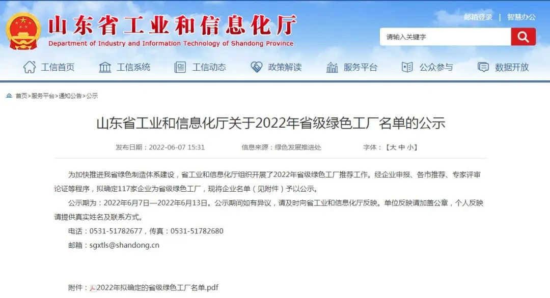 近日,省工信厅公示了2022年拟确定的省级“绿色工厂”名单,我县山田新材料集团有限公司入选!
