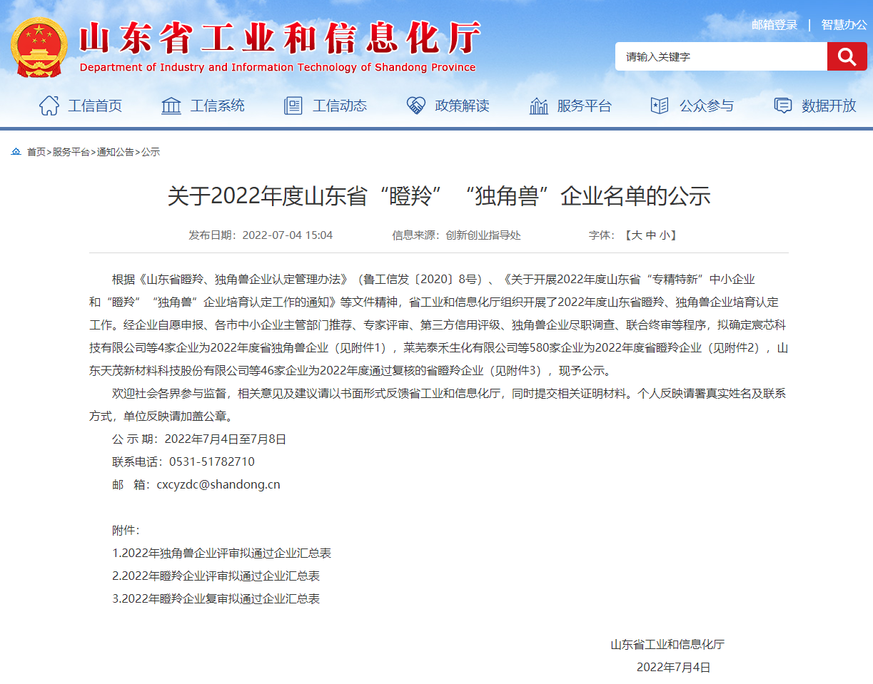 山东省2022年度瞪羚企业认定结果近日出炉,临沭县山东海佑福瑞达制药有限公司、山东金德新材料有限公司、山田新材料集团有限公司、山东扬名新材料技术有限公司4家企业获批瞪羚企业。这是临沭县大力实施工业强县战略取得的丰硕成果。目前临沭县拥有瞪羚企业6家。