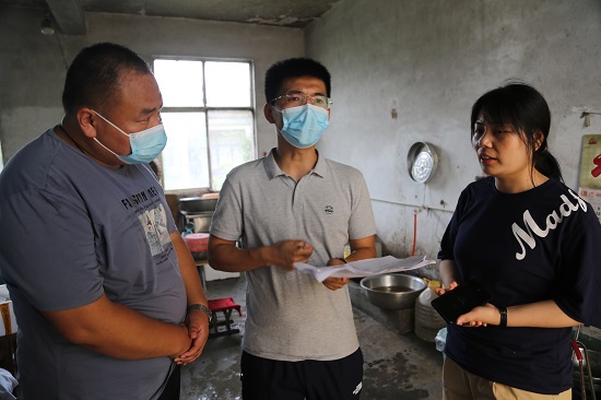 7月11日,临沭县大兴镇安监人员到企业食堂检查燃气泄露报警器安装使用情况。