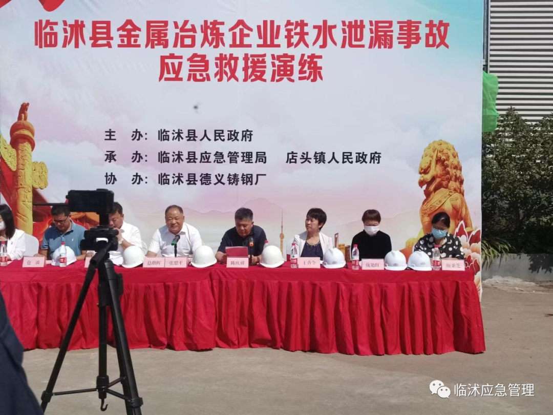 为贯彻执行省、市关于进一步加强应急预案和应急演练工作的通知要求,加强练兵备战,全力抓好安全生产应急管理工作,推动全县安全生产形势持续稳定向好,为党的二十大胜利召开创造良好的安全环境,2022年9月21日,在临沭县店头镇德义铸钢厂举行临沭县金属冶炼企业铁水泄漏事故综合应急演练。