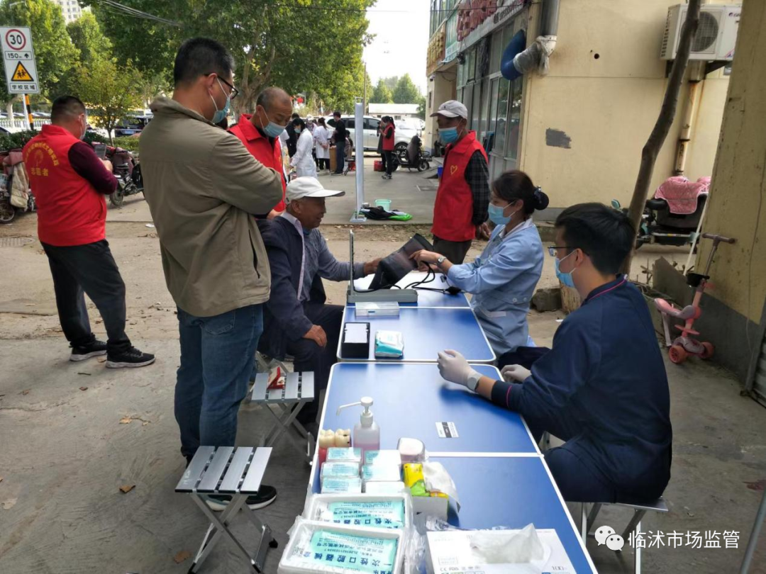 10月14日,临沭县市场监管局结合“学悟见创”活动和“我为群众办实事”活动,联合孙蒿科社区党支部、天一大药房、初医堂、光铭牙科、鑫视光眼镜店,组织党员干部在孙蒿科社区开展“健康服务进社区”“双报到”暨“喜迎二十大、我来当先锋”主题党日活动。 活动现场,通过悬挂宣传横幅、发放宣传资料、现场咨询服务等方式,向社区群众宣传了高血压、心脑血管疾病等预防和治疗的相关知识及养生保健、心理调适的注意事项,为社区群众提供了测量血压、口腔检查、健康咨询等服务。 活动悬挂宣传条幅2幅,发放宣传资料200余份,免费为80余人次提供现场咨询及检查服务。