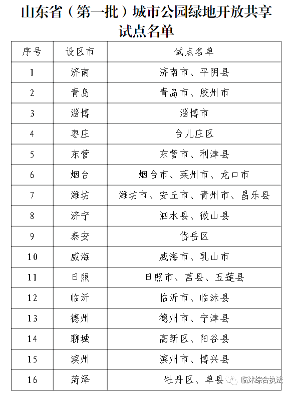 | 临沭县综合行政执法局:临沭县入选全省首批城市公园绿地开放共享试点名单 | ||||||||||||||||||||||||