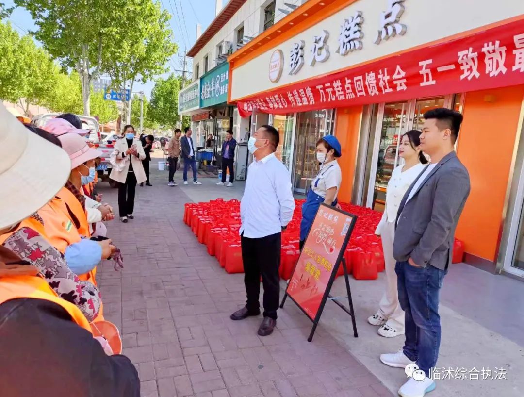 | 临沭县综合行政执法局:临沭爱心商户向环卫工人赠送糕点彰显社会担当 | ||||||||||||||||||||||||