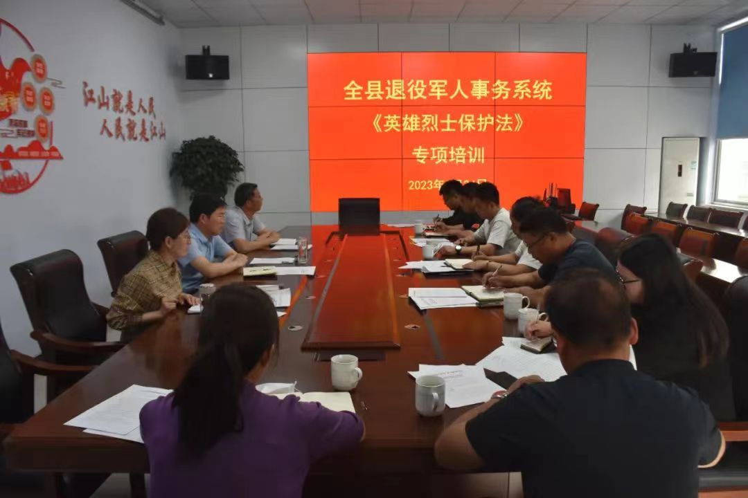 今年是《中华人民共和国英雄烈士保护法》颁布实施五周年,为做好《英雄烈士保护法》普法宣传工作,5月25日下午,临沭县退役军人事务局召开全县退役军人事务系统《英雄烈士保护法》专项培训会,县退役军人事务局党组书记、局长李伟,党组成员、滨海革命烈士陵园管理服务中心主任杨进美及各镇街退役军人服务站站长参加会议。