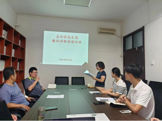 以诗促思,在诗歌朗诵中思廉。举行科技局廉政诗歌朗诵活动,通过诵读《廉洁颂》、《爱莲说》、《廉洁在我心》等主题鲜明、立意新颖的廉洁诗文,弘扬了清廉文化,营造了反腐倡廉的良好氛围。