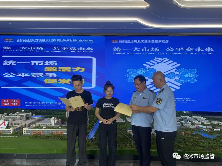 为进一步提升社会公平竞争意识,根据总局和省、市局的统一部署,自9月11日以来,临沭县市场监管局以“统一大市场 公平竞未来”为主题,开展了公平竞争宣传周活动。 在本次宣传周活动中,临沭县市场监管局利用网站、公众号、户外电子显示屏等平台发布宣传标语,并在商场、广场等人群密集区域设置宣传台,摆放宣传展板,发放宣传资料,向广大群众普及公平竞争知识,宣讲公平竞争政策的重要性和意义。同时,临沭县市场监管局还组织执法人员深入企业、商户,针对公平竞争政策的实施情况进行专项调研。 通过宣传周活动,深入推进了公平竞争政策的普及和落实,增强了广大群众的公平竞争意识,为临沭县打造公平竞争的市场环境、促进经济社会持续健康发展奠定了坚实基础。