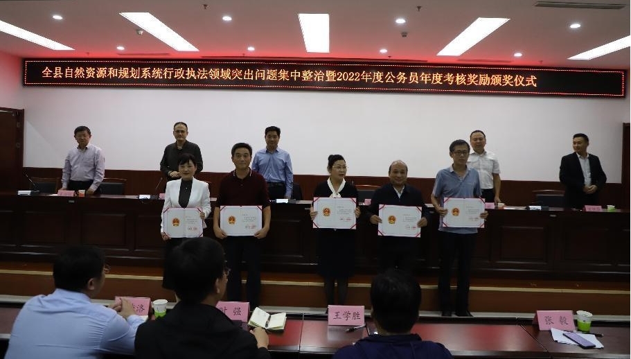 10月12日,临沭县自然资源和规划局在县政务服务中心举行2022年度公务员考核奖励表彰大会颁奖仪式,局党组成员、副科级以上领导干部,各科室、基层所全体职工参加。