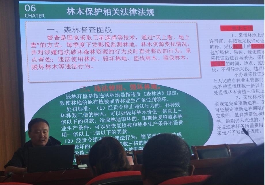 宣讲培训过程中,县自然资源和规划局执法大队负责同志对森林督查、林木采伐、使用林地等相关政策进行宣讲,并着重讲解滥伐林木、违法使用林地等涉林案件的几种常见情形及处罚标准,同时结合实际案例进行详细解读。 通过此次培训,镇街两级工作人员对林地、林木保护工作有了更深刻的认识,切实加强了基层工作人员森林管理能力,为推进森林资源保护发展打下了坚实基础。 |