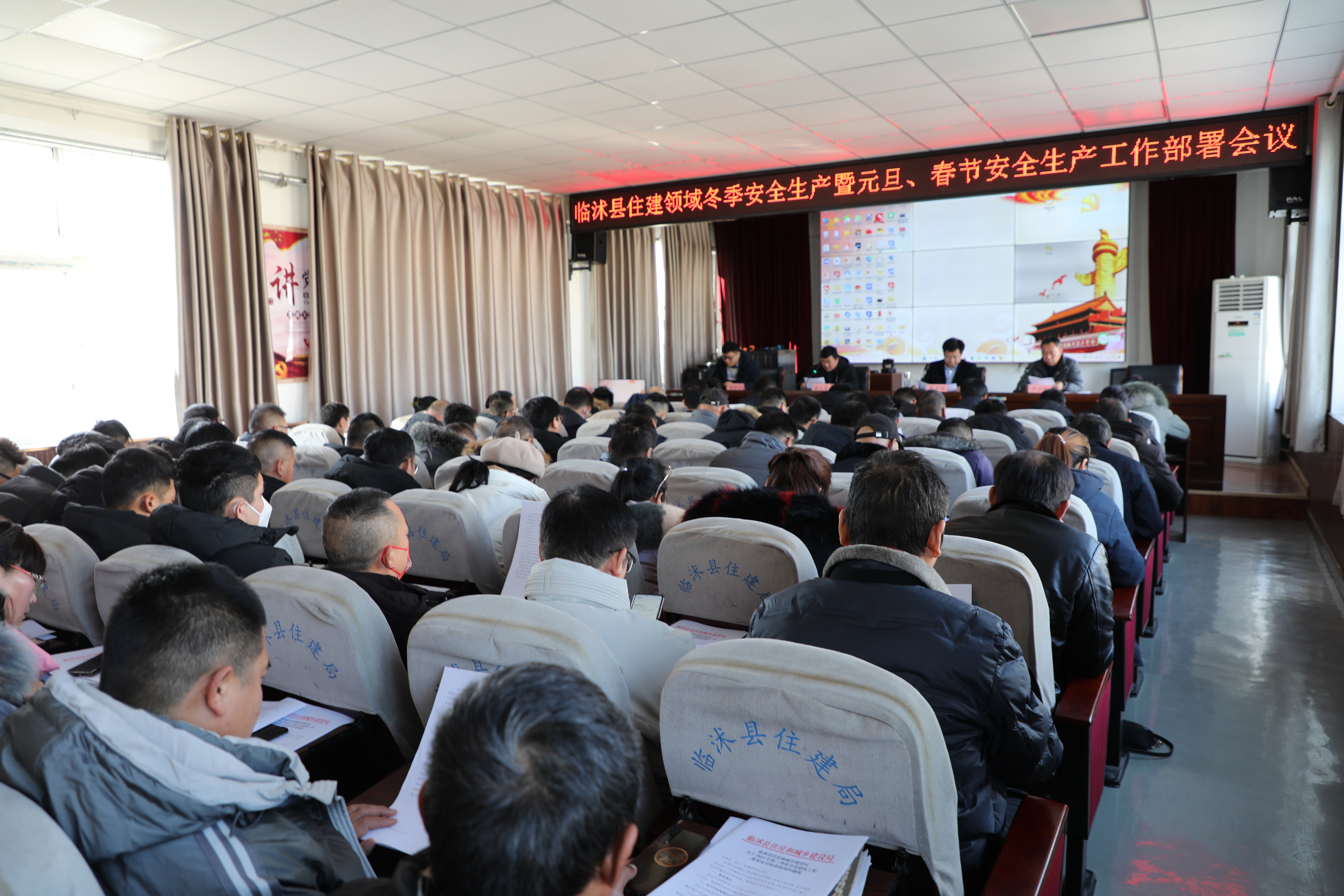 12月22日上午,临沭县住建领域冬季安全生产暨元旦、春节安全生产工作部署会议在住房和城乡建设局四楼会议室召开。全县在建工程建筑施工企业主要负责人、项目经理和项目总监等90多人参加了会议。县住建局党组成员、副局长张卫伟出席会议并讲话。 会议由县建设安全工程质量服务中心副主任尹计彬主持。会上,反馈和通报了今年第三季度质量安全辅助巡查情况,传达了关于做好冬季施工质量安全管理等一系列文件。县住建局党组成员、副局长张卫伟就如何抓好元旦、春节期间安全生产工作提出了具体要求。要求全县各级各建筑施工企业要提高站位,抓住重点,持续拧紧安全生产“责任阀”,筑牢建筑安全“防护网”,坚决杜绝各类安全生产事故发生,为全县经济和社会发展营造和谐稳定的社会环境。