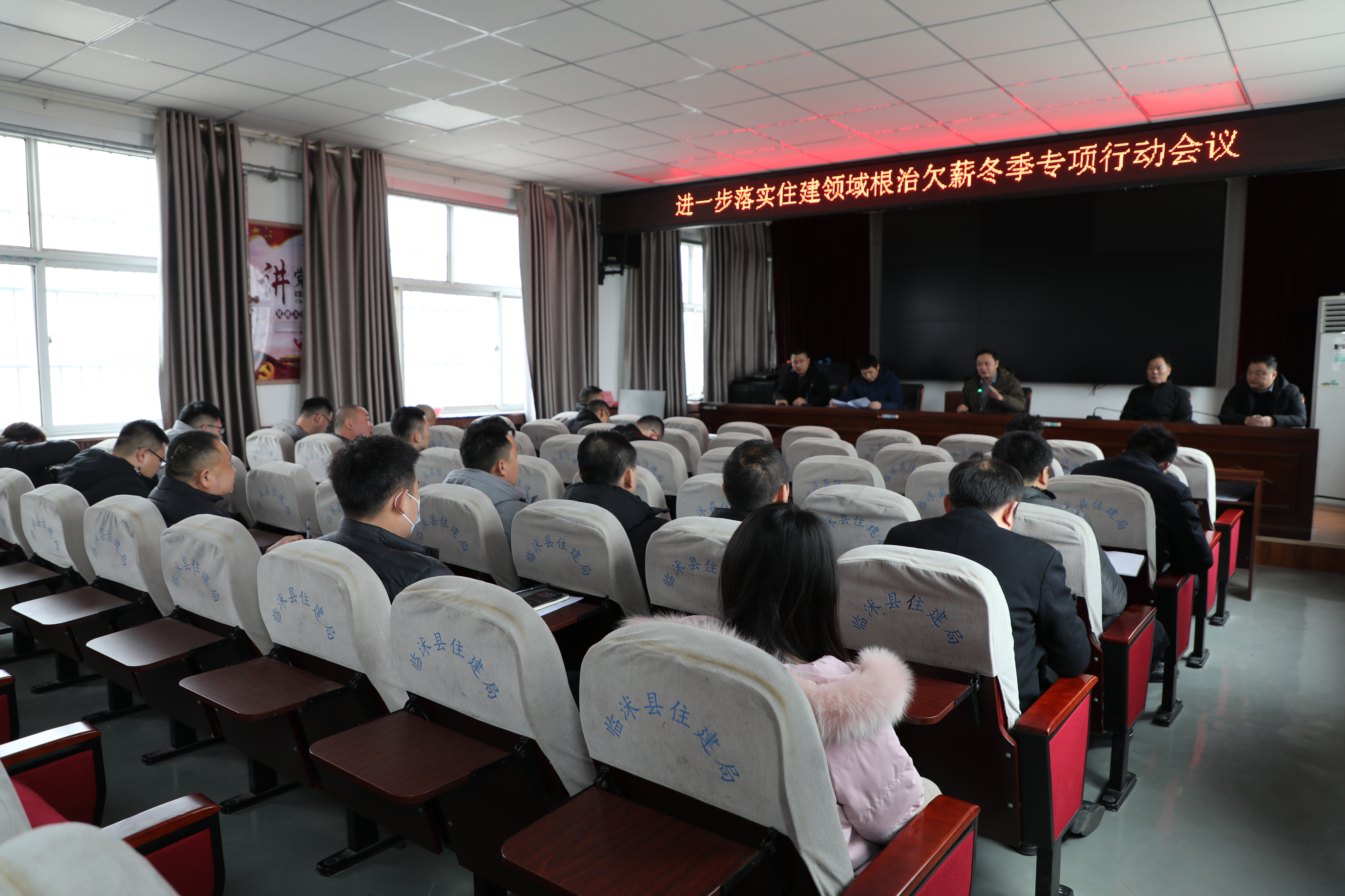 1月30日上午,临沭县进一步落实住建领域根治欠薪冬季专项行动会议在住建局四楼会议室召开。 全县各在建项目建设单位、施工单位以及存在欠薪投诉的企业分管负责人参加了会议。县住建局副局长刘彦彪主持会议并讲话。 会议指出,全县各级各建设单位、施工单位以及存在欠薪投诉的企业要压紧压实属地管理责任和企业主体责任,集中排除化解欠薪风险隐患问题,坚持消解存量,遏制增量,确保查实的欠薪问题在2024年春节前办结,进一步维护社会和谐稳定。