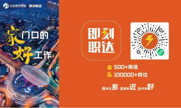 据悉,【即刻职达】是万达智慧商业平台推出的商户员工招聘数字化产品。秉承万达智慧商业平台“帮扶商户,促进就业”的服务理念,依托遍布全国的大型连锁实体商业中心,推出以商户员工招聘为主体,面向广大求职者提供更丰富、更满意的“家门口好工作”,线上线下相融合的数智化招聘新模式。同时,平台还为用户输出更多临沭县招聘细分领域的优质资源,并提供人员招聘、入职、培训全周期、一体化的便捷数智化增值服务。 【即刻职达】平台的岗位主要涵盖了临沭县商业、购物中心各业态的标准岗位。全职、兼职、实习都可以在平台上应聘。平台入驻的企业经过层层筛选,开放岗位都是真岗实薪!市民朋友可扫描下方图片二维码,在【即刻职达】小程序上注册你的信息,开启职场新篇章!