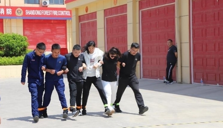 下山后,团员青年们回到森林消防大队,开始趣味运动。大家分为六组,每组站成一排,相邻两人的腿绑在一起,手臂相挽,开始多人多足竞走。出发口哨声响起时,各组按照自己的节奏,在“一二一”的号子声中迈开步子,齐心协力,向终点出发。趣味活动拉近了彼此的距离,进一步提高了团队凝聚力。