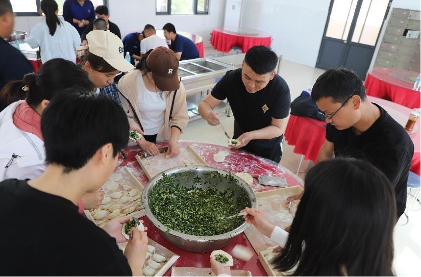 中午时分,厨房里弥漫着香气,欢声笑语此起彼伏,大家各显身手,分工配合,一起和馅、揉面、擀皮、包饺子。一会儿,一盘盘热腾腾、香喷喷的饺子端上了餐桌。活动了一上午,大家围坐在一起,共同品尝亲手制作的饺子,欢乐而温馨。