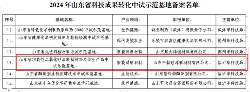 9月25日,山东省科技厅公布了2024年山东省科技成果转化中试示范基地备案名单,山东科翰硅源新材料有限公司申报的“山东省功能性二氧化硅溶胶新材料及衍生产品中试示范基地”成功入选,该基地是临沭县第一家省级科技成果转化服务平台,全市仅5家。