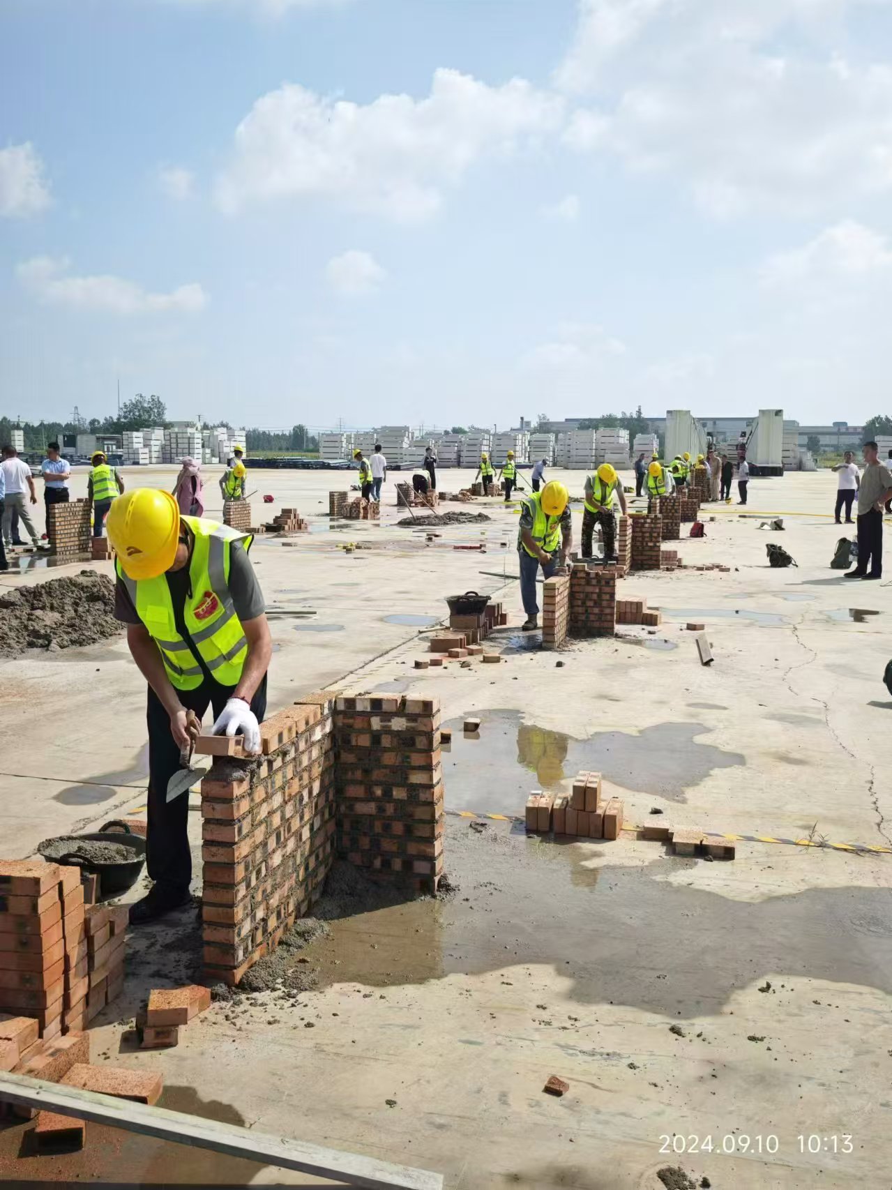 9月10日人社局组织的临沭县第三届“劳动之星”职业技能竞赛砌筑工竞赛项目由蛟龙镇政府主办,临沭县建筑业协会承办,县住建局作为行业主管部门予以指导。今天上午,住建局、人社局、蛟龙镇政府和建筑业协会,四方共同到金明寓建筑科技有限公司实地查看理论考试和技能实操场地,并商量竞赛项目组织形式、流程和注意事项,力求通过精心组织、细心安排举办一届高质量职业技能竞赛。