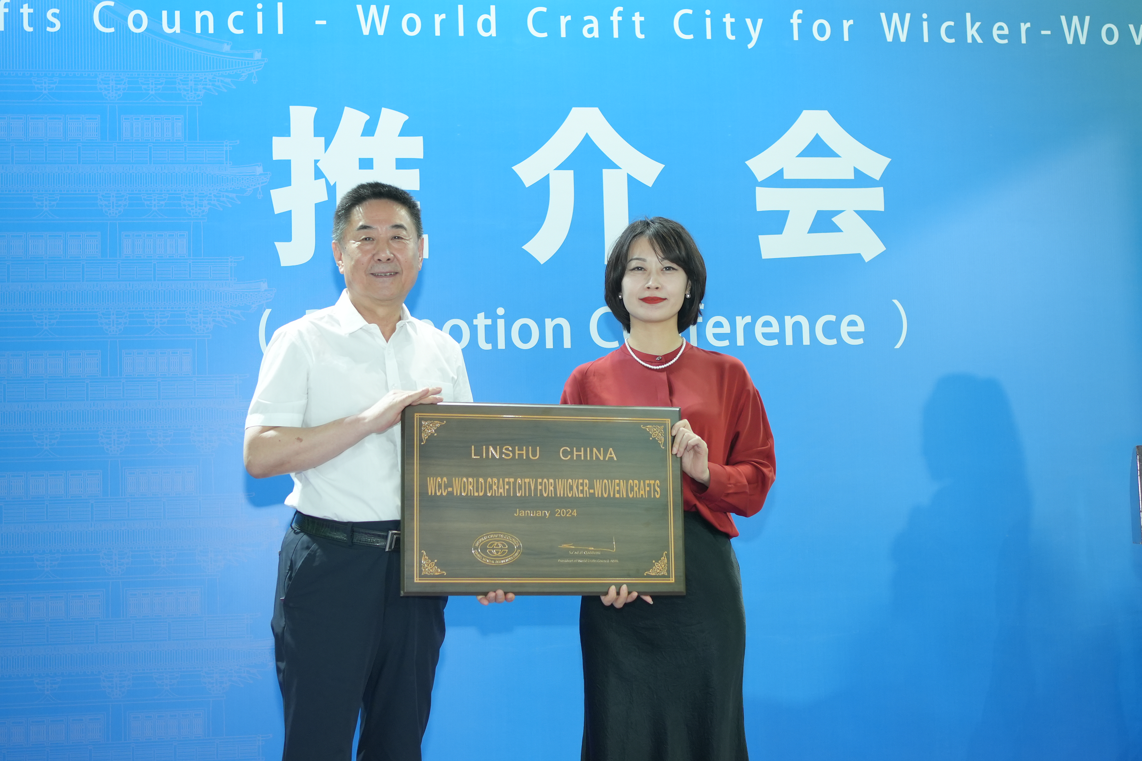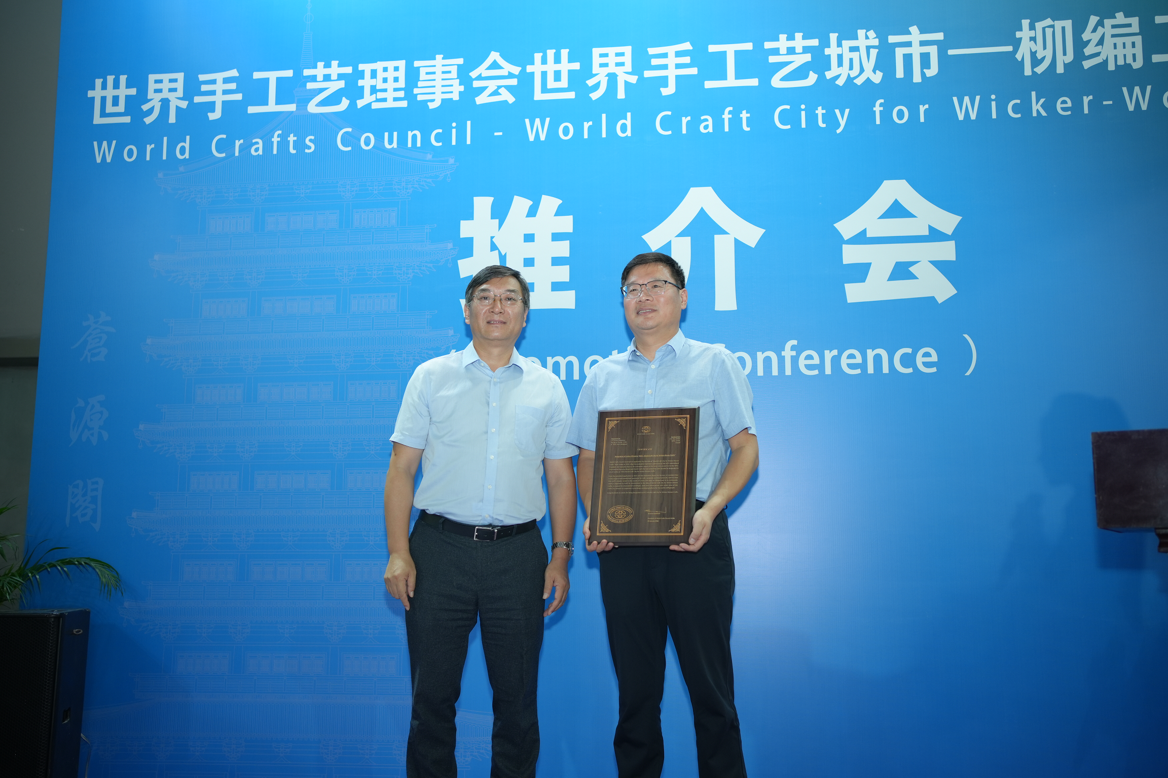 10月22日下午,临沭县“世界手工艺理事会世界手工艺城市—柳编工艺之都”推介会在广州南丰国际会展中心举行,100多位参展商代表、商协会代表、国外重要客商、平台负责人参加。会上,举行“世界手工艺理事会世界手工艺城市——柳编工艺之都”证书和牌匾颁发仪式,中国工艺美术协会书记王志杰、临沭县人民政府副县长吴超分别致辞。