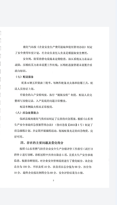 四、临沭县国控燃气城南液化气站安全生产分级评估公示B级
