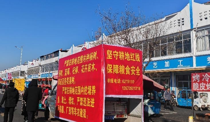 宣传车“跑起来”,政策声音“响遍田间地头”。“严禁占用永久基本农田挖塘养鱼、植树造林”“乱占耕地建房必追责”……连日来,一辆辆悬挂耕地保护标语的宣传车穿梭在各村庄主干道,车载广播循环播放耕地保护法规,吸引了沿途村民驻足聆听。针对农村耕地“非农化”“非粮化”突出问题,工作人员深入耕地集中区域,进行入村讲解政策,并现场发放《耕地保护告知书》《农村乱占耕地建房“八不准”手册》等资料,结合典型案例向群众讲解破坏耕地要承担的法律责任,引导村民自觉抵制违法违规用地行为。