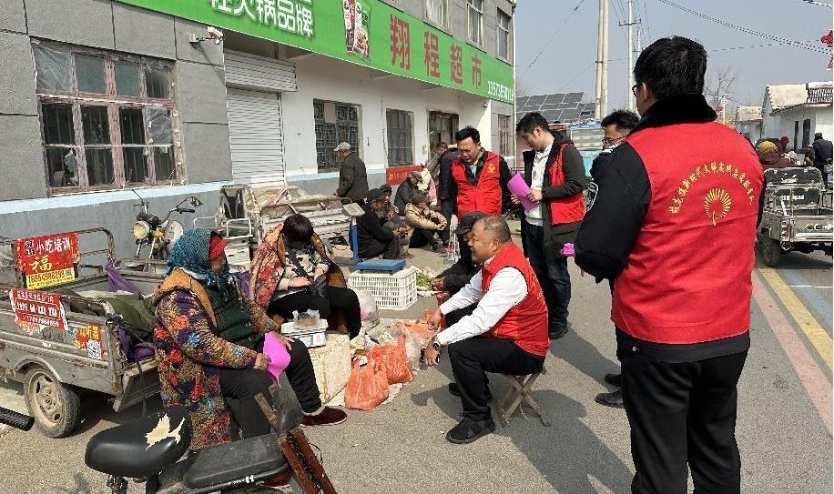2月27日,临沭县自然资源和规划局党组书记、局长张思平带领工作人员深入蛟龙镇山子村集市,开展耕地保护政策春季宣传活动。