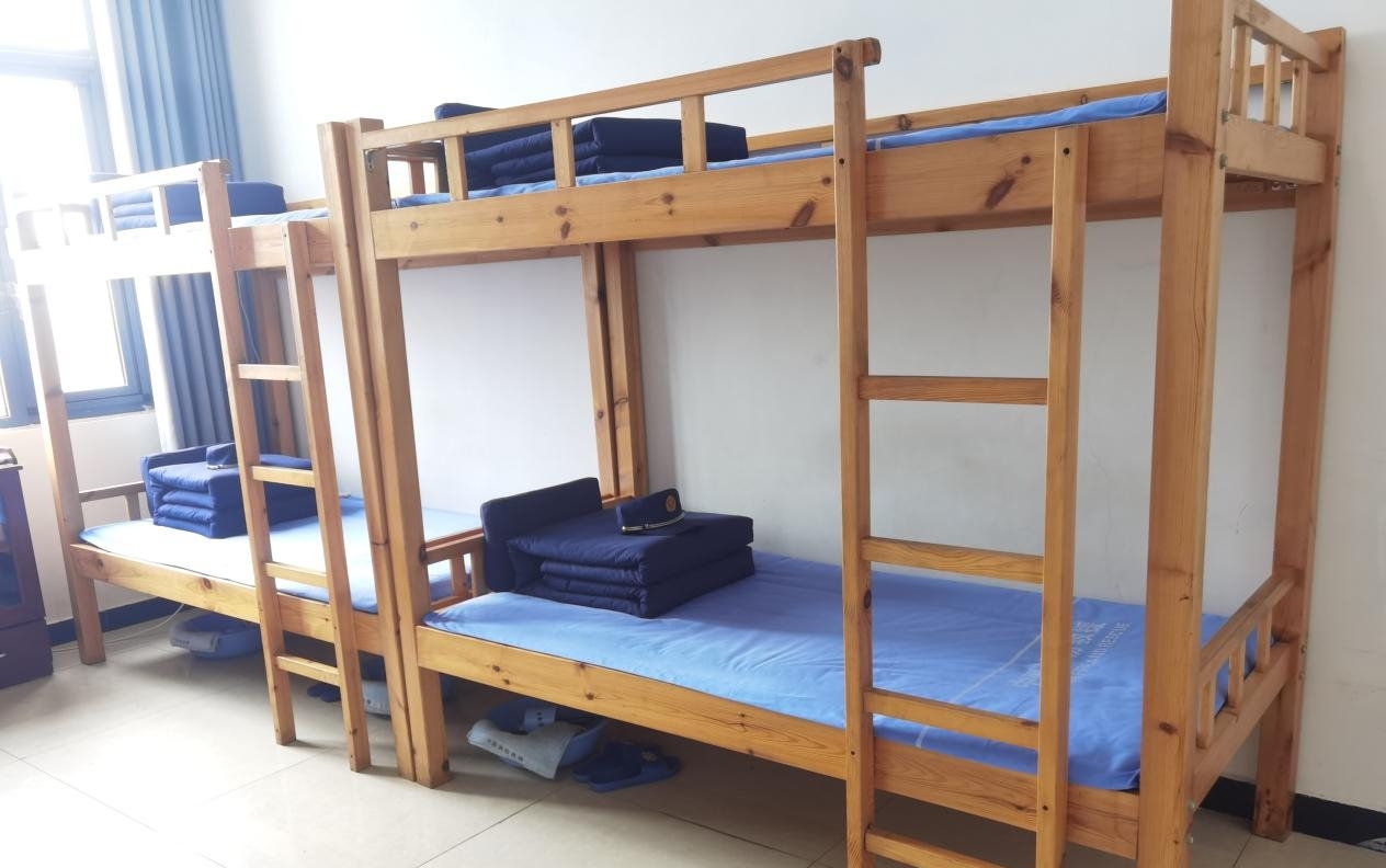 镜头二:走进“橙色守望”的日常,解锁“豆腐块”密码。“被子怎么叠得像刀切一样呢?”走进消防队员宿舍,学生们被整齐划一的内务标准所震撼。消防队员现场演示“叠被秘籍”:铺平、压实、折角、塑形……不到三分钟,软塌塌的棉被变身棱角分明的“豆腐块”。“我来试试!”学生们热情挑战,却屡屡“战败”,有的被子成了“馒头卷”,有的边角松松垮垮。“叠被子考验耐心和细致,和消防队员救火一样,细节决定成败!”老师借机鼓励学生平时培养专注力的重要性。参观过程中,消防员还分享了日常训练故事:负重30斤徒步登山、“魔鬼”训练……“原来英雄的背后,是日复一日的坚持,伟大都是熬出来的。”师生们感慨道。