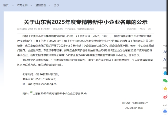 6月16日,山东省工信厅公示了山东省2025年度专精特新中小企业名单,我县山东庆诚智能科技有限公司等17家新申报企业获批,另有12家企业通过复核,截止到目前为止,临沭县尚在有效期内的“专精特新”企业83家,这是我县持续坚持优质中小企业梯度培育结出的硕果。