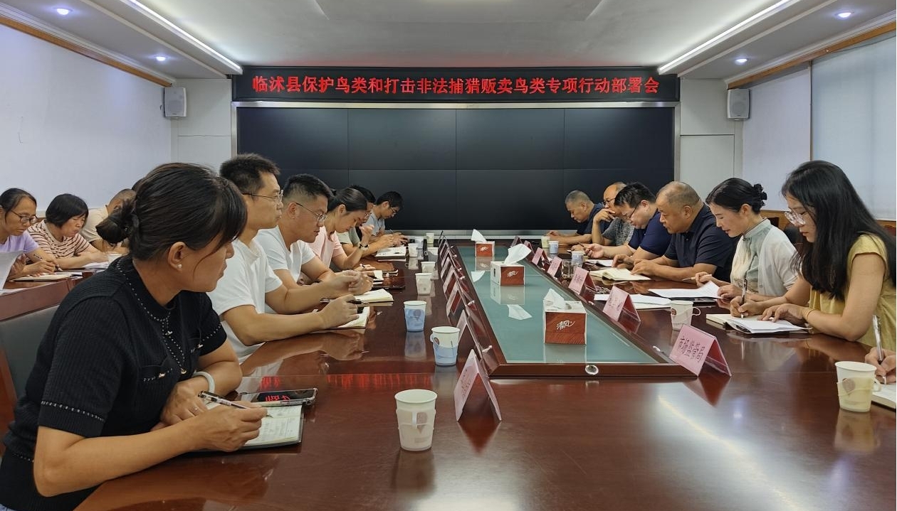 9月8日,临沭县召开保护鸟类和打击非法捕猎贩卖鸟类专项行动部署会议,传达国家、省、市林业部门保护鸟类活动和打击非法捕猎贩卖鸟类专项行动动员部署视频会议精神,对专项行动作出部署安排。县野生动物保护联席会议成员单位和各镇街参加。