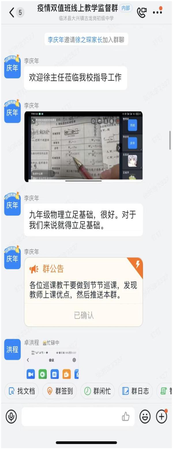 众志成城防疫守护岁月静好——古龙中学线上教学巡课纪实 停课是对生命的保护,不停学是对梦想的追求,博学而不穷,笃行而不倦!孩子的成长只有一次,线上教学会让我们体会到什么是“陪伴”——线上,有我们全体老师的“空中课堂”“线上答疑”“居家指导”;线下,有我们家长的用心呵护、温馨陪读和督促检查。让我们共同努力,同心战“疫”,春天会如约而至,当然,还有疫情过后平安的我们。
