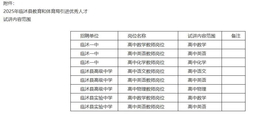 | 2025年临沭县教育和体育局引进优秀人才面试通知 | ||||||||||||||||||||||||