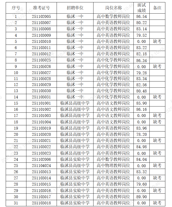 | 2025年临沭县教育和体育局引进优秀人才面试成绩公示 | ||||||||||||||||||||||||