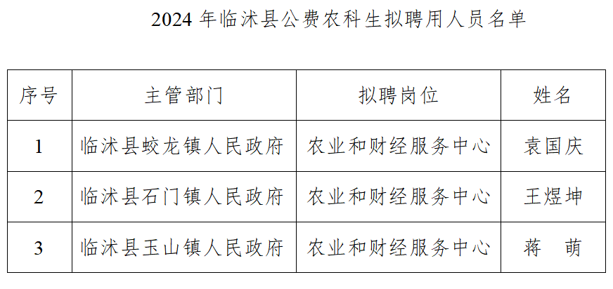 附件:2024年临沭县公费农科生拟聘用人员名单