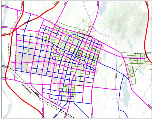规划形成“七横八纵”的道路主骨架体系。“七横”为:钻石大街(原327国道)、正大街、沭河大街、常林大街、兴大街、泰安街、物流大道;“八纵”为:青石路、金茂路、225省道、青云山路、光明路、苍山路、冠山路、玉山路。