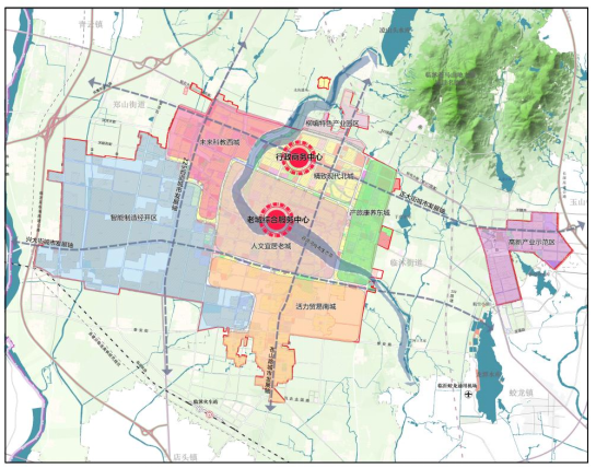 3.功能结构:规划形成“一带两心、四轴八片”的功能结构。一带为沿苍源河景观带;两心为行政商务中心、老城综合服务中心;四轴为以兴大街、正大街、225省道、苍山路为街区发展轴;八片区为产旅康养东城区、柳编特色产业园区、人文宜居老城区、活力贸易南城区、智能制造经开区、未来科教西城区、精致现代北城、高新产业示范区。